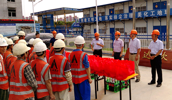 董事長馬和軍對(duì)一線工人不畏高溫、堅(jiān)守崗位、辛勤工作表示感謝,并叮囑大家一定要把安全放在第一位,合理安排作息時(shí)間,注意勞逸結(jié)合,同時(shí)要求后勤保障部門結(jié)合實(shí)際,做好防暑降溫工作。隨后,市政府辦、建管局、建筑工會(huì)等領(lǐng)導(dǎo)為各位工人分發(fā)毛巾、飲料、風(fēng)油精等防暑降溫用品,為員工送去絲絲“清涼”。