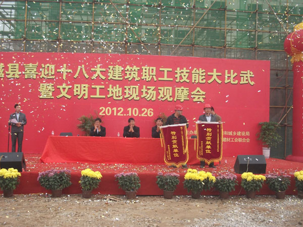 本次職工技能比武共有12家單位參加,通過激烈角觸,第四工程公司寶盛世紀(jì)B區(qū)二期項(xiàng)目部選送的鋼筋組一舉奪得小組第一名、焊接組奪得小組第二名,項(xiàng)目部同時(shí)被授予2012年磁縣建筑職工技能比武特別貢獻(xiàn)單位。