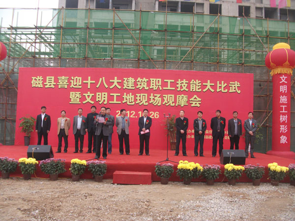 今年3月6日,磁縣住建局副局長趙志彬帶領(lǐng)質(zhì)量、安全監(jiān)督部門到項(xiàng)目部進(jìn)行檢查指導(dǎo),對(duì)形象策劃、現(xiàn)場(chǎng)布置、場(chǎng)容場(chǎng)貌等方面給予了很高的評(píng)價(jià),并確定將該項(xiàng)目作為轄區(qū)建設(shè)工地的標(biāo)桿。對(duì)此工程公司十分重視,加大了安全文明施工投入力度,嚴(yán)格按照國家AAA級(jí)文明工地的標(biāo)準(zhǔn)進(jìn)行常規(guī)管理,本項(xiàng)目現(xiàn)已在磁縣成為亮點(diǎn)工程,取得了良好的社會(huì)效應(yīng)。