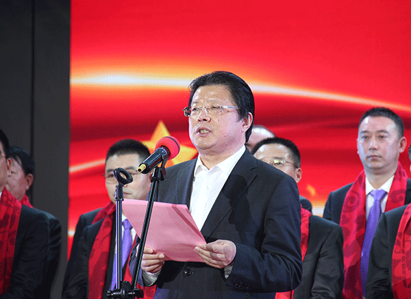集團(tuán)高管們?cè)谂炫鹊摹拔液臀业淖鎳?guó)”聲中激情登場(chǎng),集團(tuán)董事長(zhǎng)馬和軍致辭答謝,他回顧了集團(tuán)一年來(lái)所取得的輝煌成績(jī),感謝社會(huì)各界及全體達(dá)欣人的努力,并對(duì)公司的未來(lái)之路描繪了新的發(fā)展藍(lán)圖。