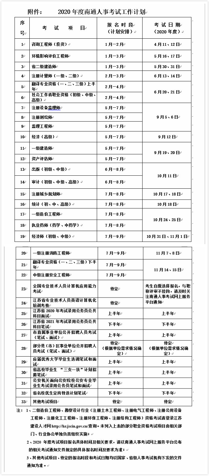 2020年度南通市人事考試工作計(jì)劃