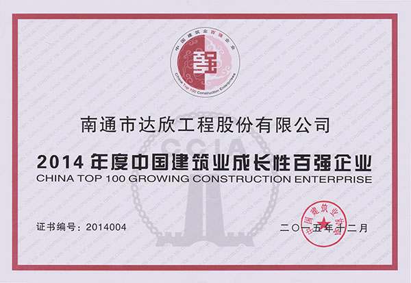 ----公司榮獲2014年度中國(guó)建筑業(yè)成長(zhǎng)性百?gòu)?qiáng)企業(yè)