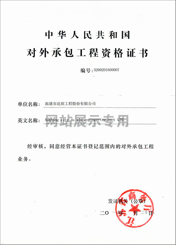 1月28日,公司獲得江蘇省商務(wù)廳頒發(fā)的“對外承包工程資格證書”,由此為走出國門承接工程、派遣勞務(wù)獲得了市場準(zhǔn)入許可,同時(shí)也為公司積極拓展更大的發(fā)展空間奠定了基礎(chǔ)。這是公司積極策應(yīng)“一帶一路”國家戰(zhàn)略的市場選擇,也是公司面對新常態(tài)形勢下,我國固定資產(chǎn)投資下滑,國內(nèi)需求增長放緩,建筑業(yè)僧多粥少的產(chǎn)能過剩問題越顯突出的發(fā)展抉擇。